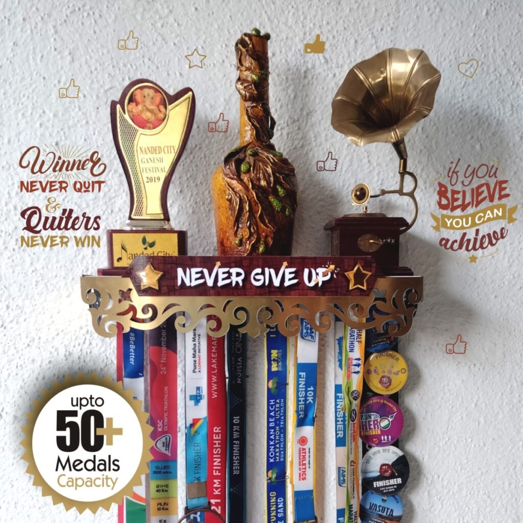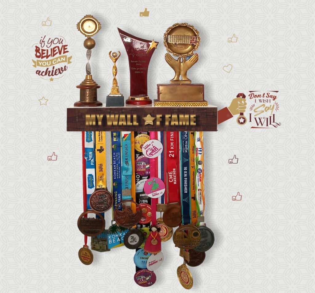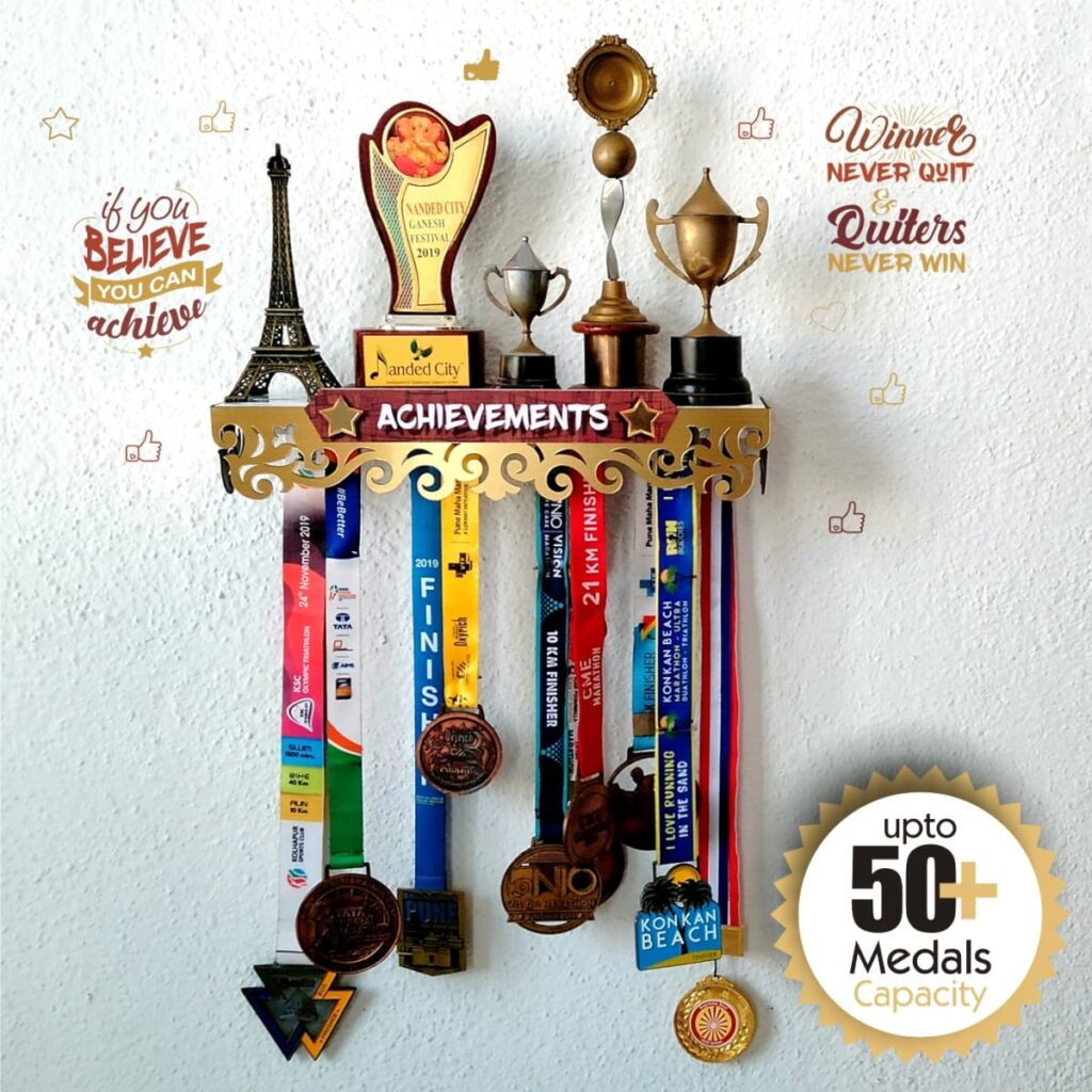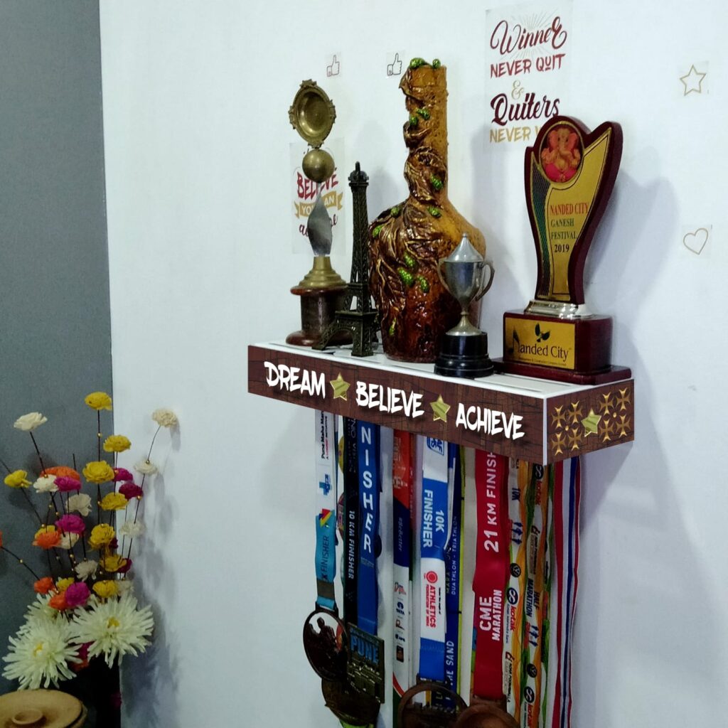 “Medal Space” brings a beautiful, unique, Medal hanger & Trophy shelf a 2 in 1 product for showcasing your Achievements. which are all available on Amazon and our website too. (other festival decoration and paper decoration).