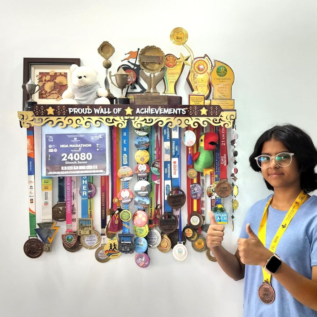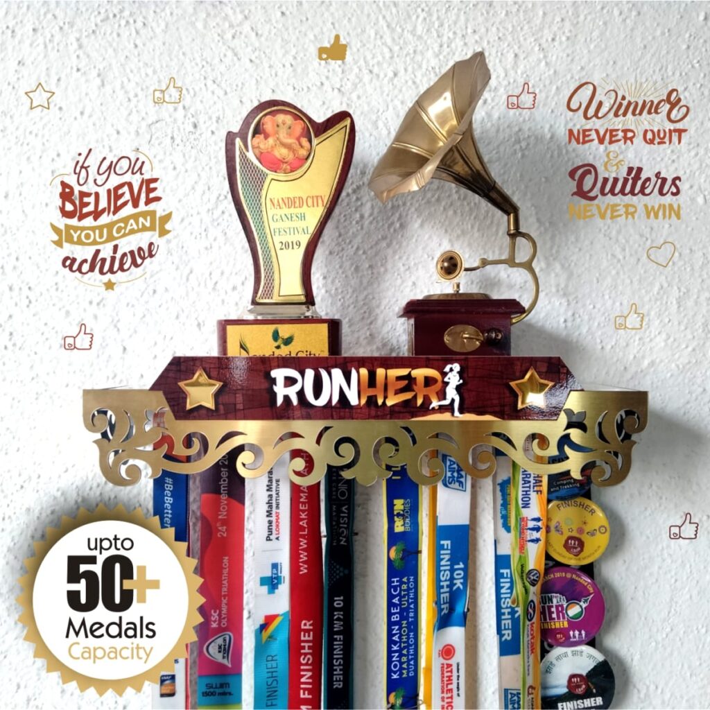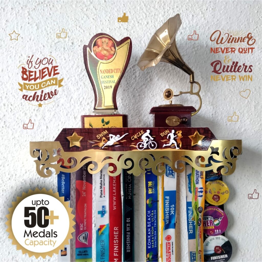 “Medal Space” brings a beautiful, unique, Medal hanger & Trophy shelf a 2 in 1 product for showcasing your Achievements. which are all available on Amazon and our website too. (other festival decoration and paper decoration).
