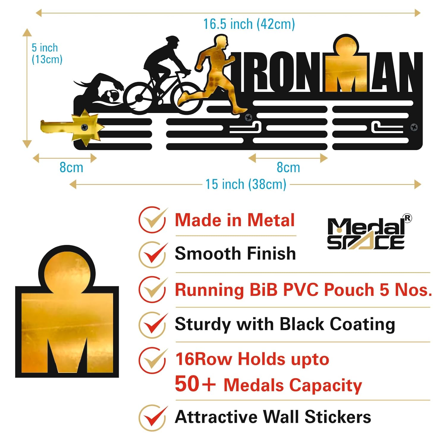 The Medal space a proud brand under the space store presents the Ironman BIB hanger, where you can display your achievements that you have earned through your hard work and dedication. This is a place that we can proudly decorate in our homes, and seeing it will always inspire us and others. This is not just a hangar but a unit dedicated to honoring the journey of every athlete.