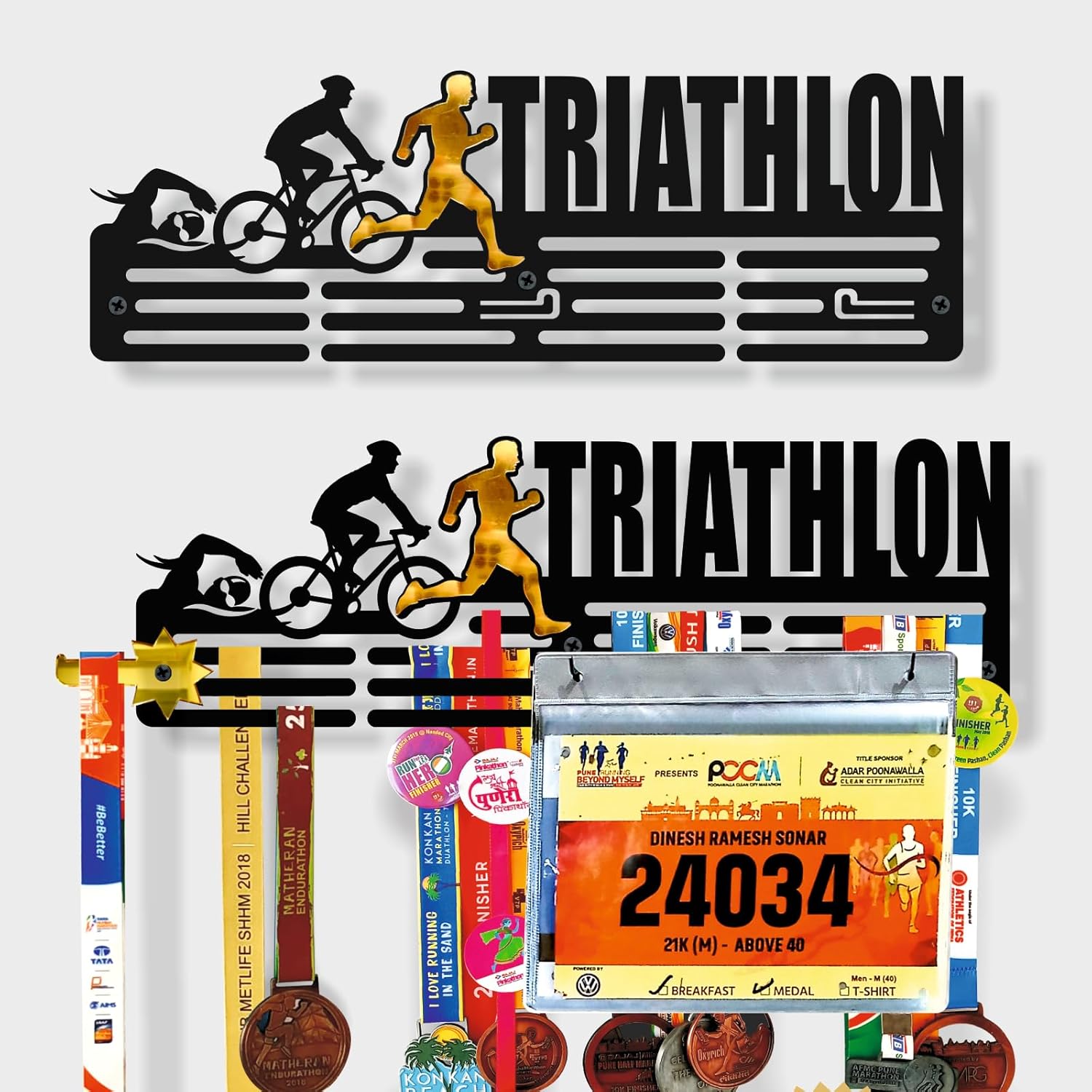 The Medal space a proud brand under the space store presents the Triathlon BIB Medal Hanger, where you can display your achievements that you have earned through your hard work and dedication. This is a place that we can proudly decorate in our homes, and seeing it will always inspire us and others. This is not just a hangar but a unit dedicated to honoring the journey of every athlete.